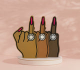 The engagement ring foam finger is a fun, eye-catching addition to any bachelorette party, engagement party, wedding shower or reception. Available in multiple shades to reflect the beautiful hues of our brides of color!