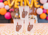 Cheers, Babes! Cute + versatile, these cups fit every theme, every bach, every vibe. Set includes 16 cups with 8 cups in each of our gorgeous 2 shades for the best bride tribe around. We give you full permission to use them again + again - they’re made out of dishwasher-safe frost flex material, so why not?! Refills are warmly welcomed. Our cups can hold up to 16oz of your favorite libation. These Ring Finger Cups are truly the ultimate bachelorette party decoration!
